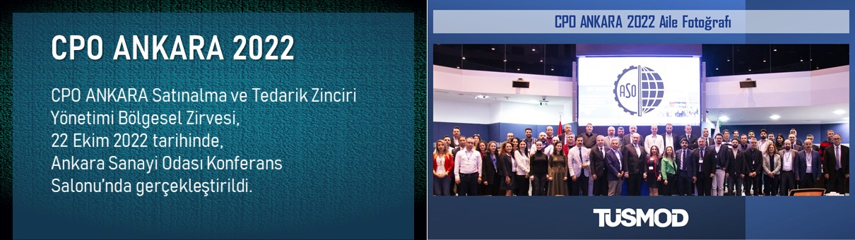 Değerli Meslektaşlarımız, CPO Ankara 2022 Satınalma ve Tedarik Zinciri Yönetimi Zirvesi 22 Ekim 2022 tarihinde Ankara Sanayi Odası konferans salonunda 09:00-15:00 saatleri arasında gerçekleştirildi. CPO Ankara Program Akışı : Deniz Kutman , Türk Traktör Satınalma...