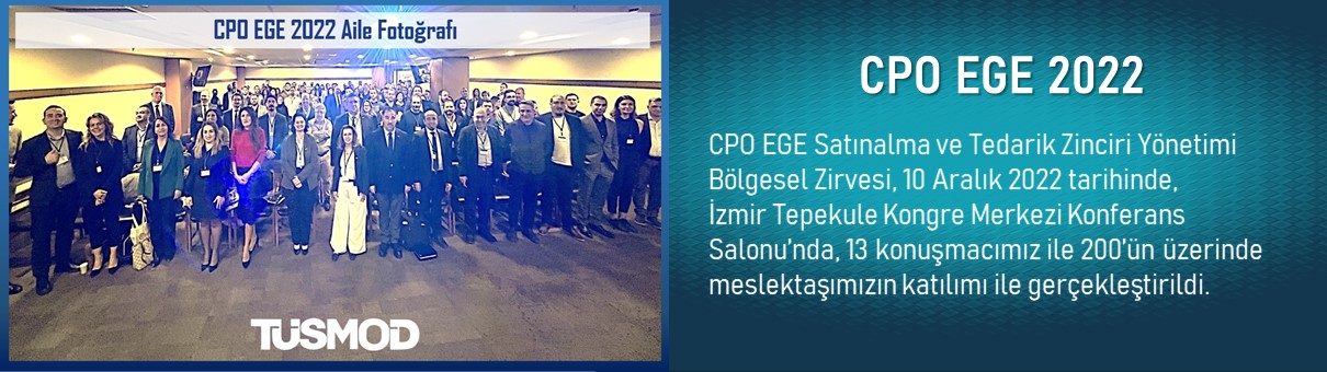 Değerli Meslektaşlarımız, CPO EGE 2022 Satınalma ve Tedarik Zinciri Yönetimi Zirvesi 10 Aralık 2022 tarihinde MMO Tepekule Kongre Merkezi konferans salonunda 09:00-15:00 saatleri arasında olacaktır. Konuşmacılarımız (Alfabetik sıralıdır. LinkedIn bağlantısı isim üzerindedir.) Alpay Bellisan – Socar...