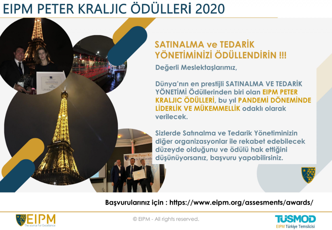 EIPM Peter Kraljic Ödülleri 2020 Değerlendirme Süreci , Soru Listesi ve Yardımcı Dökümanlar için https://www.eipm.org/eipm-peter-kraljic-awards-2020/ sayfasını ziyaret edebilir ilave sorularınız için eipm@tusmod.org adresine mail atabilirsiniz.